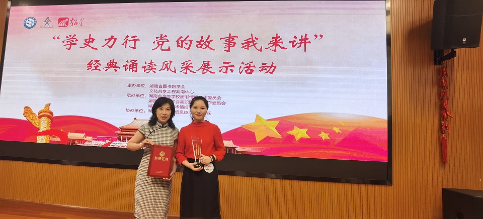 2021年9月17日,为牢牢把握学史明理、学史增信、学史崇德、学史力行的目标要求,结合全省图书馆实际,积极营造“学党史、悟思想、办实事、开新局”的浓厚氛围,湖南省图书馆学会主办的“学史力行,党的故事我来讲”经典诵读风采展示活动在湖南图书馆举办。我馆副馆长魏红梅带队,张雪梅、周思妤作为参赛选手,共同组成304am永利集团图书馆代表队参加本次比赛。