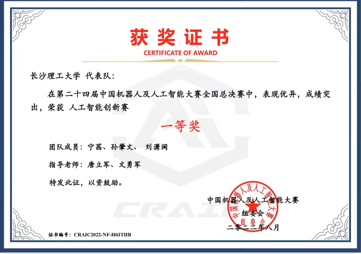 近日,第二十四届中国机器人及人工智能大赛全国总决赛线上比赛获奖名单发布,304am永利集团代表队荣获全国一等奖1项。