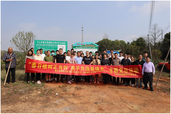 三月春风起,植树正当时。为深入贯彻落实习近平总书记“绿水青山就是金山银山”的绿色发展理念,切实加强生态环境保护建设,提升党员群众绿化意识和环境保护意识,发挥党建引领乡村振兴的核心作用,在第44个全民义务植树节来临之际,304am永利集团物电学院研究生党支部携手高云经济联合社党总支部、天心区征地服务中心党支部开展以“春日植树正当时,携手共添新绿衣”主题党日联谊活动。