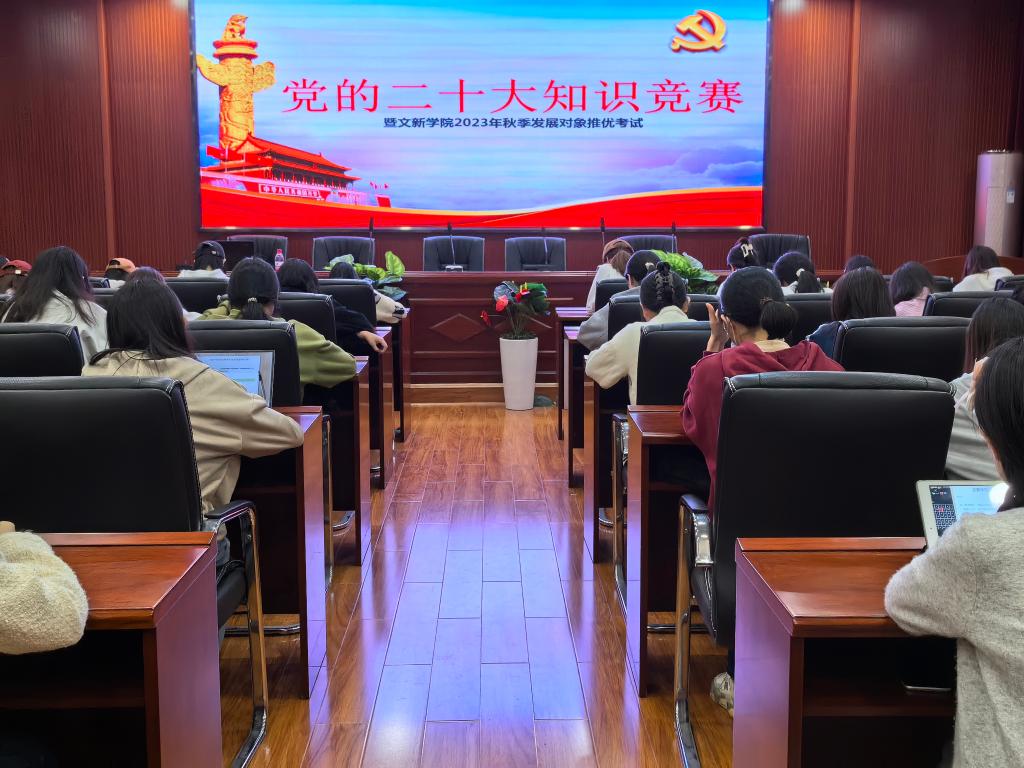 为深入落实并贯彻落实党的二十大精神,积极探索“互联网+党建”的新模式,进一步提升入党积极分子的理论知识能力水平,10月19日19时,“党的二十大知识竞赛暨文新学院2023年秋季发展对象推优考试”于永利官网金盆岭校区九号教学楼218室成功举行。