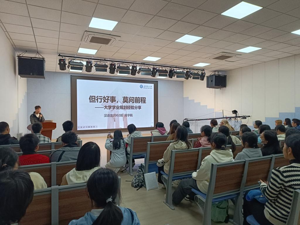 听榜样分享,思学业规划,增前进动力,促奋斗青春。文新学院于11月27日29日在金盆岭校区九教113会议室分专业举行了两场学业规划分享会,邀请20级保研学生23级新生分享大学学业规划经验23级辅导员李婵出席,全体新生参加。