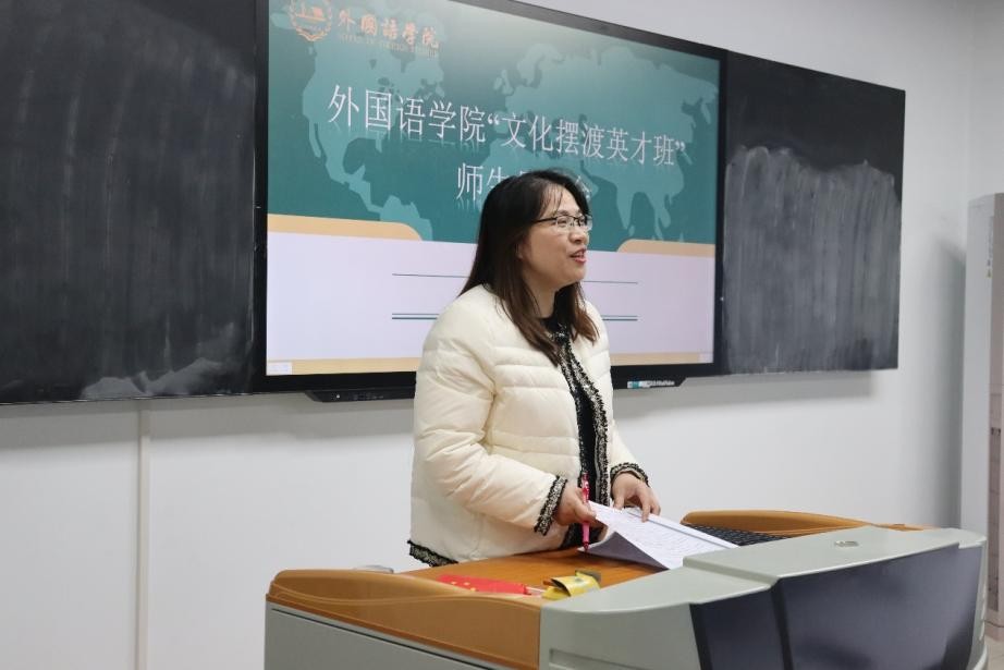 在互动交流环节,“文化摆渡英才班”班长范宇喆表示,期待与同学、老师们进行思想上的碰撞,将学院“学参中外,语汇天下”的理念深耕大家心中,承担起一名“文化摆渡者”的责任与使命。