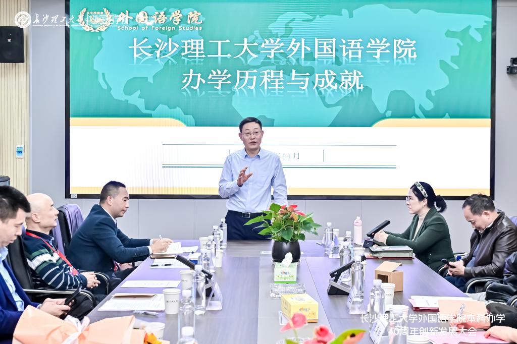 会议伊始,师生们一齐观看了学院宣传片《文化摆渡十五年》,感悟了学院从创建之初的筚路蓝缕到如今的辉煌成就。紧接着,副校长、校友总会会长谈传生,校友总会副会长、原副校长叶泽,院长段胜峰分别向各会场校友的到来表示了热烈欢迎,院党委书记文丽丽、院长段胜峰、副院长姚尧则从历史沿革、人才培养、科学研究、社会服务等方面向校友们介绍了学院的办学历程与成就,重点展示了学院在学科建设、师资队伍、国际交流等方面的显著成就,还展望了学院未来发展的蓝图,表示将继续努力培养更多具有国际视野和跨文化交流能力的复合型人才。