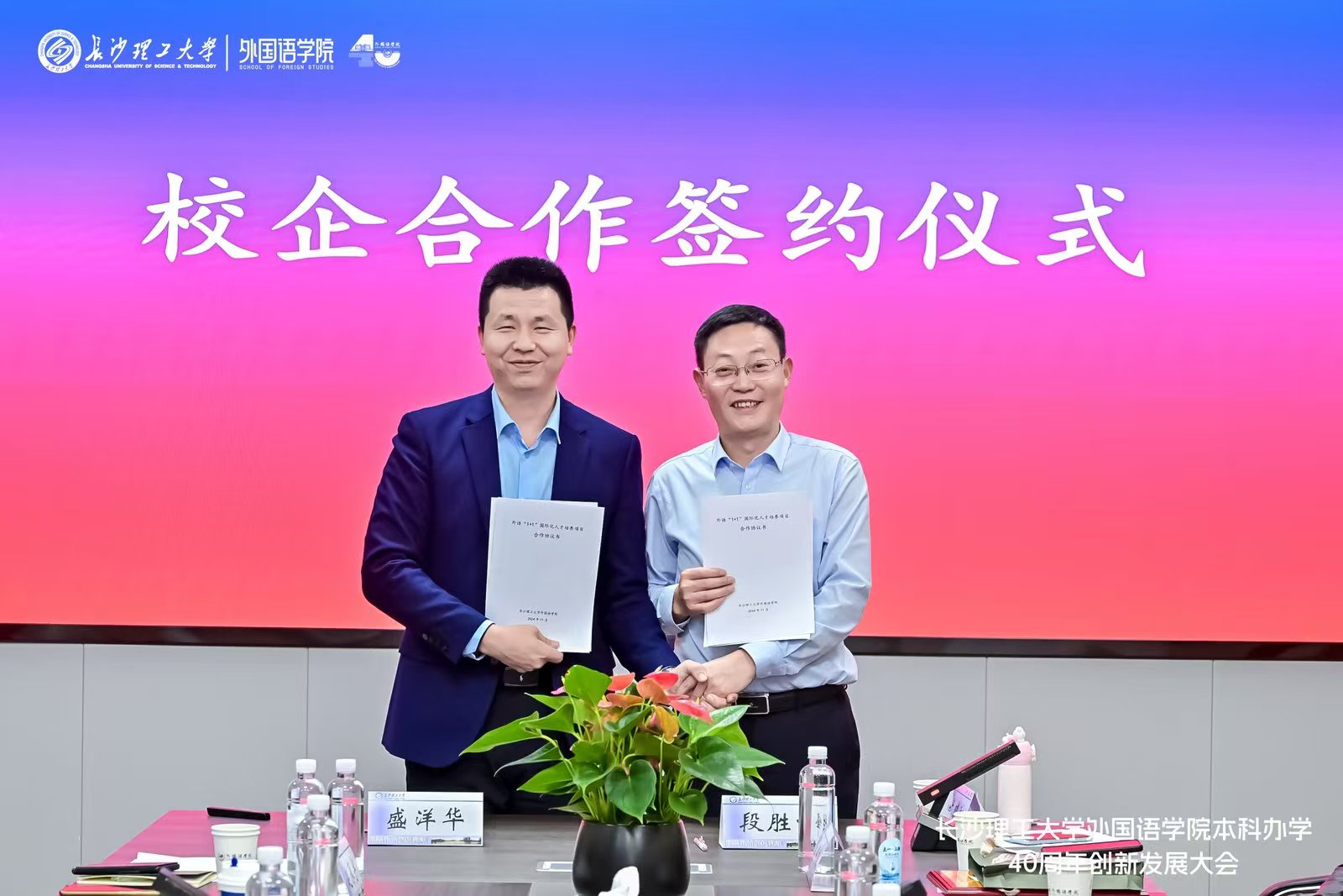 校企合作签约仪式环节,段胜峰和洋光小语种全国市场总监盛洋华共同签署了校企合作协议。此次签约不仅为双方带来了合作的新机遇,而且为学院外语人才培养以及各自的发展注入了新的动力。未来,双方将继续深化合作,培养更多创新型人才。