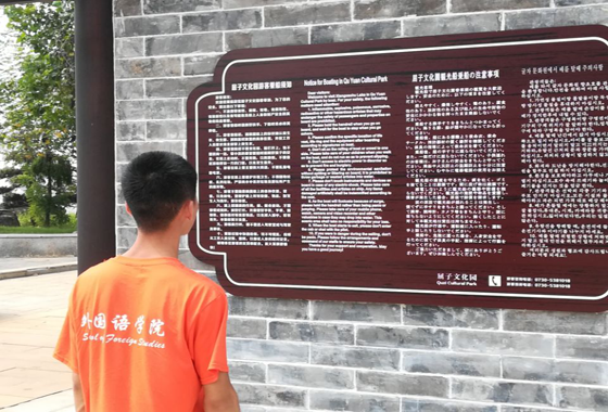 2018年7月22日,外国语学院环洞庭湖“翻译医生”暑期社会实践团队来到屈子文化园,开始翻译社会实践活动第二天的工作。