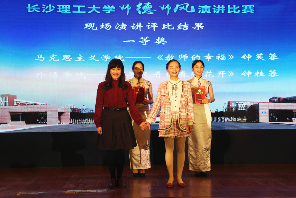 钟桂蓉老师多次获得全省教学竞赛大奖,多次受邀到全国各地讲授英语示范课,是我院教师中的杰出代表。在此次演讲赛的舞台上,她展示了外国语学院全体教师争做“四有”好老师的昂扬风貌。