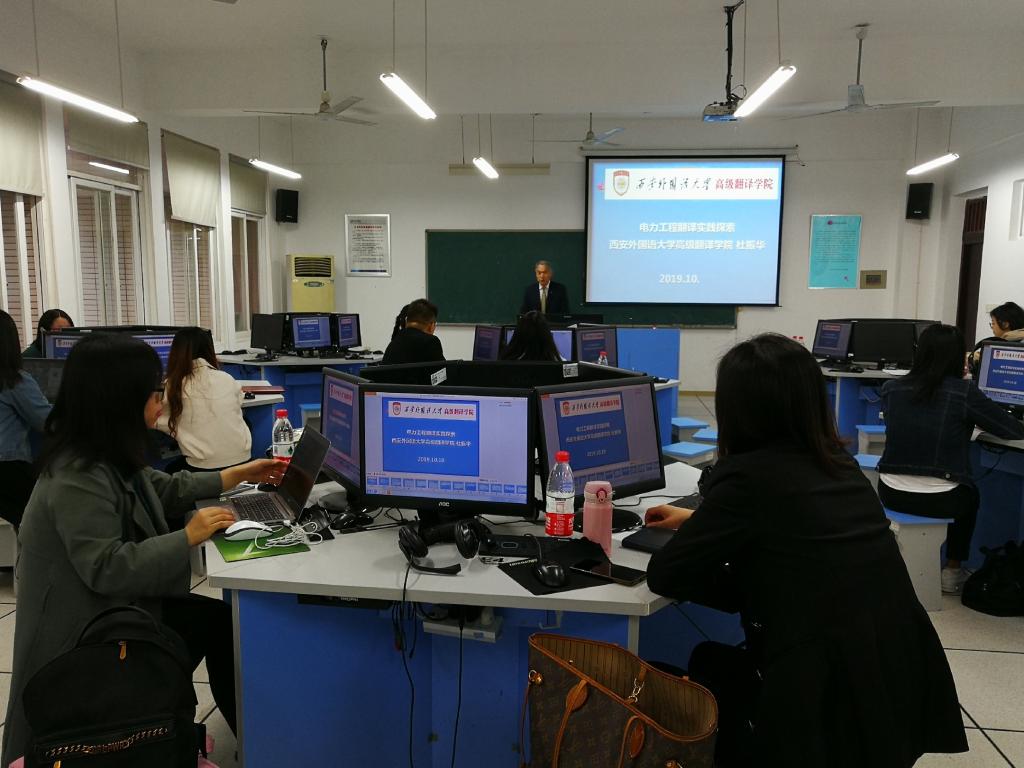 杜振华译审从事电力工程领域的专业翻译实践40余年。他和学员们分享了自己的翻译体会和心得,就电力工程招投标文件的规范性和严谨性、电力工程招投标合同语言的模糊性和电力工程翻译中同义词的辨析进行讲解,使学员对电力工程招投标流程、文本翻译技巧等有了深入的了解。