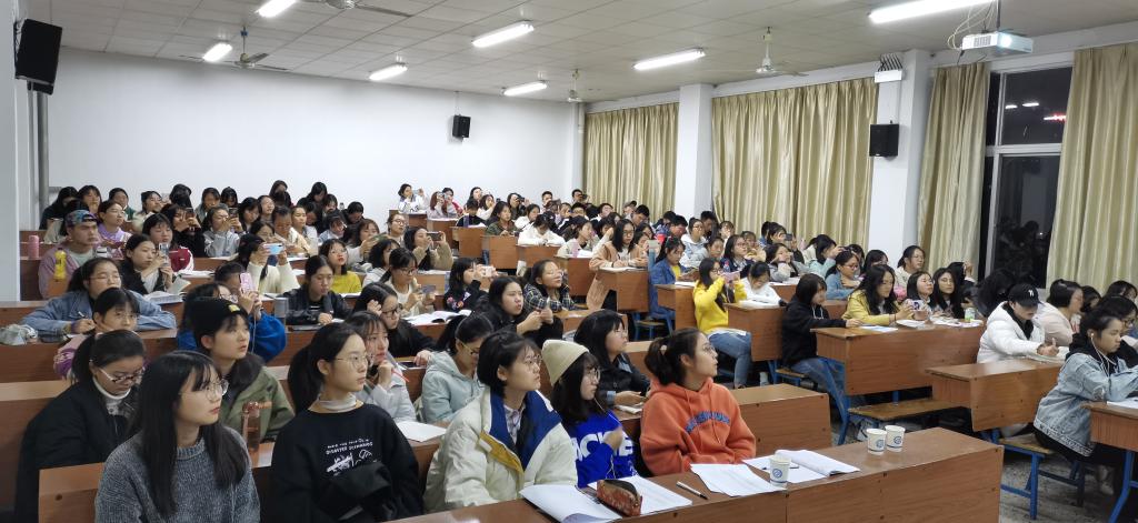 2019年11月19日晚7点半,应我院邀请,覃先美教授在金盆岭校区13教600教室为我院19级学生讲授主题为《千里之行始于足下一谩话英语类专业一年级》的学习辅导讲座。主讲嘉宾覃先美曾任解放军总参谋部情报翻译、湖南省科技翻译协会副会长,有着丰富的英语文体学、修辞学研究经验。