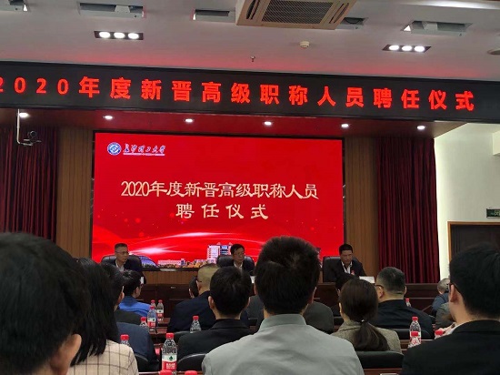 4月20日下午,永利官网在一办公楼会议厅召开2020年度新晋高级职称人员聘任仪式,校党委书记付宏渊、校长曹一家出席仪式。曹一家校长宣读了新晋高级职称的48名人员名单,并为其一一颁发聘书。付宏渊书记对新晋高级职称人员进行了祝贺,对教师们所作的贡献表达了感谢,并对受聘教师寄予了厚望。