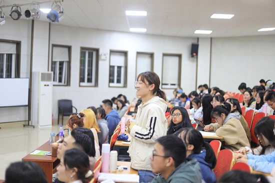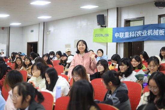 何俊从公司概况、平台福利、招聘岗位等几个方面全面介绍了中联农机,其具体内容包括企业产业布局、社会责任、人才发展、培养课程等方面。付浩文作为98年年轻的业务骨干,着重介绍了公司的技术优势、海外业务与全球战略,和同学们分享了自己的工作心得:中联农机包容性极强,注重员工的学习能力。同是学习语言专业毕业的高娟娟也分享了自己的工作经验,她表示不要被所学专业限制发展,在工作中不断扩充自身技能。在互动环节,到场学生积极参与问题抢答,工作人员赠送了中联特色的精美礼品。在提问环节,何俊为同学们详细地进行了答疑解惑,让同学们进一步了解中联农机。
