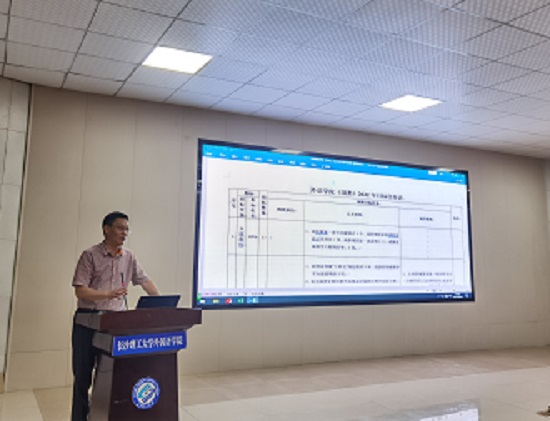 武俊辉副院长对研究生招生情况总结,培养方案修订、周期性评估等情况通报。