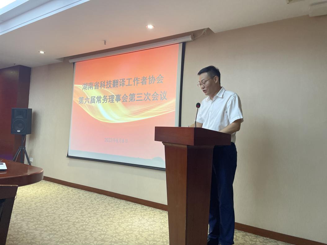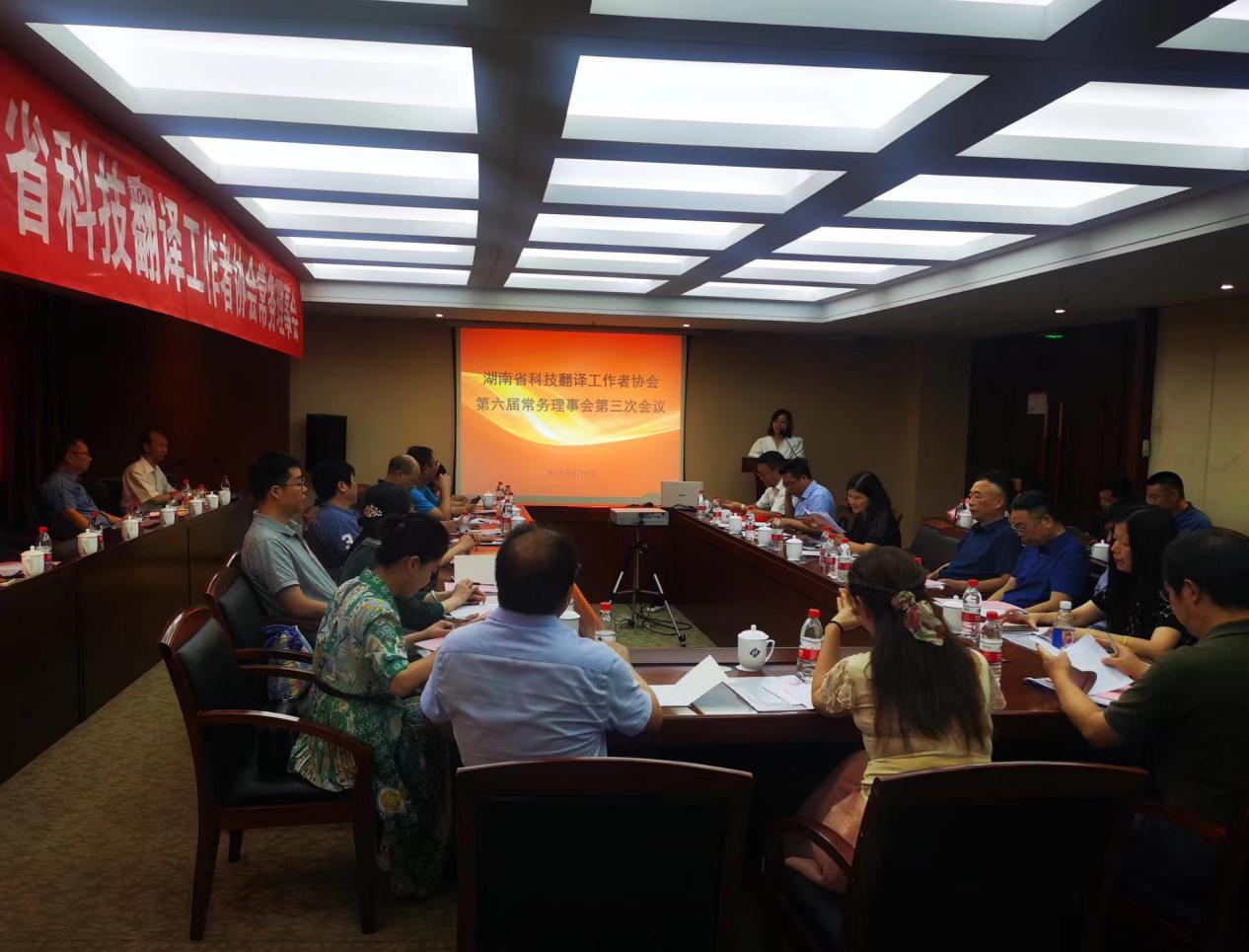 2022年8月8日上午,湖南省科技翻译工作者协会(以下简称湘科译协)第六届常务理事会第三次会议在304am永利集团国际学术交流中心会议厅召开。