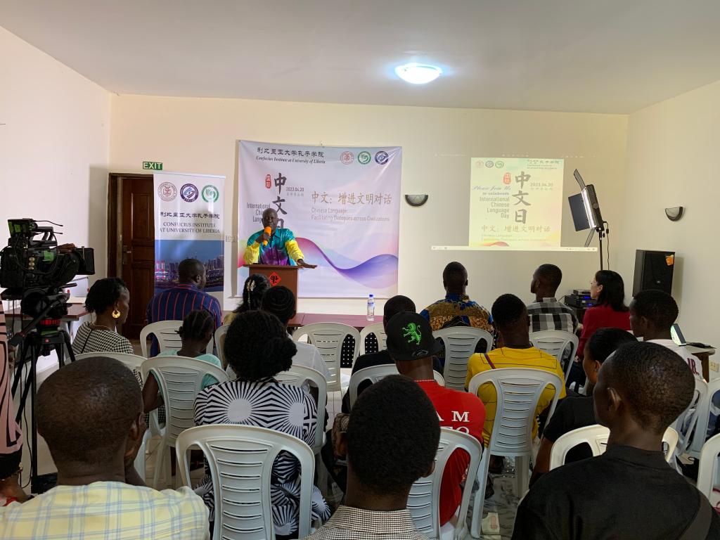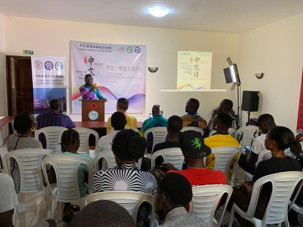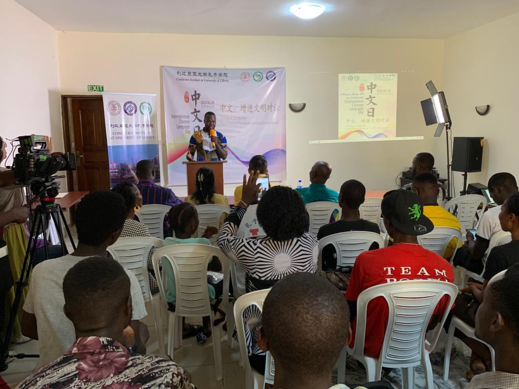 当地时间2023年4月14日,利比里亚大学孔子学院在驻地成功举办“中文与我”学习经验分享会。这是利大孔院举行的 “2023国际中文日”系列活动之一。中资企业和机构代表、利比里亚主流媒体记者代表、利大孔院各教学点负责人、利大孔院中外方院长及师生共80余人参加了此次活动。
