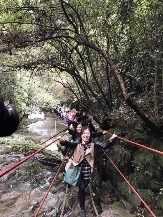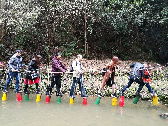 老师们首先来到位于浏阳市的爱国主义教育基地——谭嗣同故居,怀着崇敬的心情瞻仰了这位史称“戊戌六君子”的中国近代著名政治家、思想家的故居和事迹,领略其“我自横刀向天笑,去留肝胆两昆仑”的英雄气概。然后,大家走进美丽乡村-幸福屋场古港人家,欣赏了镶嵌“稻草艺术”的“百亩油菜花”基地。下午,老师们还兴致勃勃地游览了“皇龙大峡谷”,大家一边欣赏着两岸绮丽的风光,呼吸着山谷清新的空气,一边聚精会神抓紧手中的铁索,踩浮动梅花桩、过双龙潭、勇渡铁索桥、爬壁虎网、攀登云梯,尽情体验景区的近20个拓展项目。