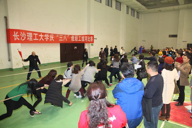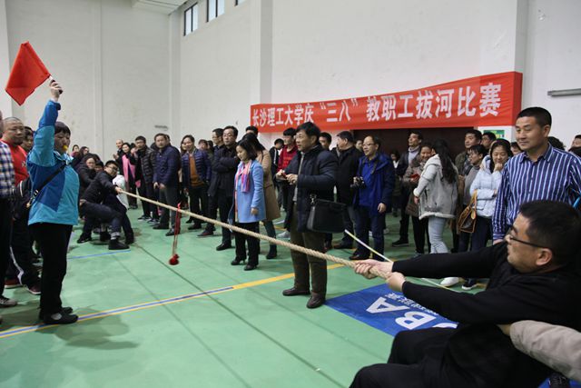 为了庆祝“三八”国际劳动妇女节,丰富广大女职工的文体生活,展示永利官网女职工和谐进取的团队意识及拼搏向上的精神风貌,校工会于3月7日下午在云塘校区体育馆举行了“三八”教职工拔河比赛。校党委书记付宏渊、党委副书记兼工会主席邹宏如亲临比赛现场,兴致勃勃地观看了比赛。