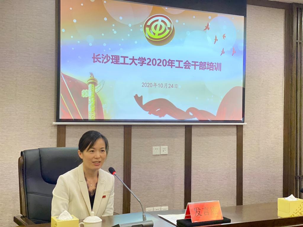 为深入学习贯彻习近平新时代中国特色社会主义思想和和中国工会十七大精神,提高工会干部的理论素养和履职能力,增进工会干部的团结交流,努力开创工会工作的新局面, 10月23—10月24日,学校在湖南省总工会干部培训中心举行了2020年304am永利集团工会干部培训。校工会委员会委员、各分工会干部、校工会专职干部共50人参加了培训,省教育工会财务部部长蔡智应邀作了专题讲座,校工会副主席(主持工作)郭剑主持会议。