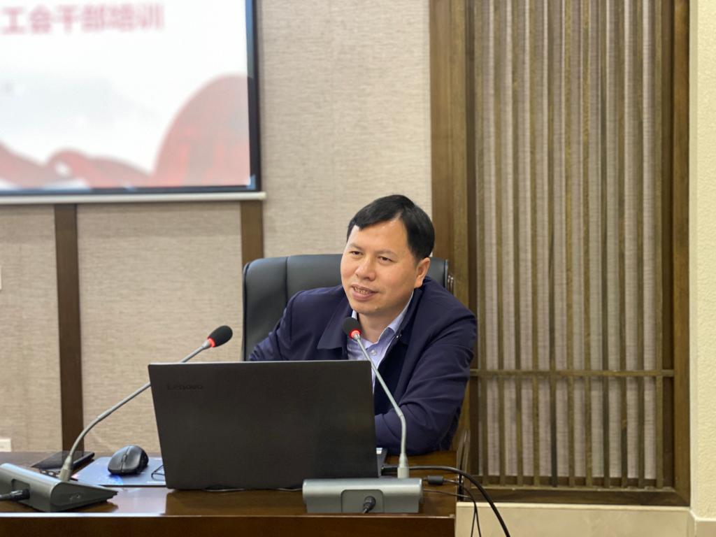 郭剑作了《浅谈新时代高校基层工会凝聚力建设》的专题讲座,阐述了工会在学校党委领导下,围绕学校中心工作,从大局出发,切实维护教职工利益,全心全意为教职工服务的政治站位,提出不断完善内部组织建设和制度建设,通过建设“工会之家”和组织工会活动增强凝聚力,勉励工会干部担当作为、工会工作改革创新,开创新局面、迈上新台阶、作出新贡献。