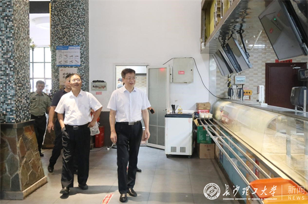 在金盆岭校区,付宏渊、曹一家一行先后来到经管学院、建筑学院、法学院、城南学院、继教学院等单位,仔细查看教师办公环境与学生学习环境,详细询问教学、办公硬件设施改造进展以及部分学院搬迁过程中遇到的问题;来到西苑学生宿舍检查宿舍提质改造情况,在西苑学生食堂了解餐饮工作部署情况。