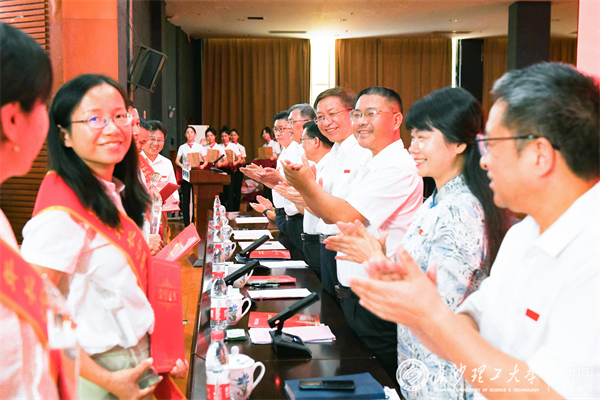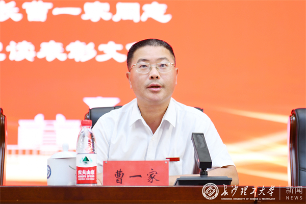 曹一家宣读了学校2021—2022学年度“教学贡献奖”、“优秀教师”、“优秀教育工作者”“十佳辅导员”等获奖名单。他勉励广大教师坚守育人初心,落实立德树人根本任务,不断增强育人本领,为决胜建成“百强”大学作出更大贡献。