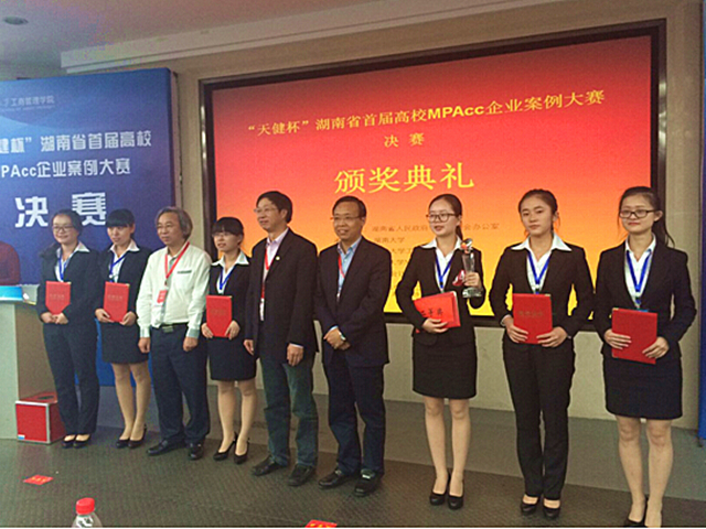 2015年10月24日,“天健杯”湖南省首届高校MPAcc案例大赛决赛在湖南大学工商管理学院报告厅成功举办。本次大赛由湖南省人民政府学位委员会办公室主办,湖南大学承办。永利官网经济与管理学院财务与会计系主任兼MPAcc项目办主任王治副教授、指导教师廖小菲副教授带队参加了决赛。从24支省内各高校队伍中脱颖而出的10支决赛队伍进行了激烈角逐,通过文本分析、PPT现场竞演等方式将纷繁复杂的商战例子进行深入浅出的完美展示。永利官网入围决赛的“群英汇”团队奋力拼搏,最终取得了全省二等奖的好成绩。