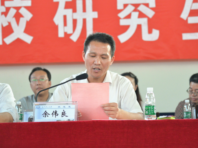 湖南省人民政府学位委员会办公室主任余伟良宣读本届篮球联赛的获奖名单
