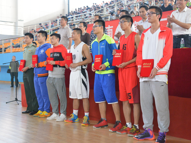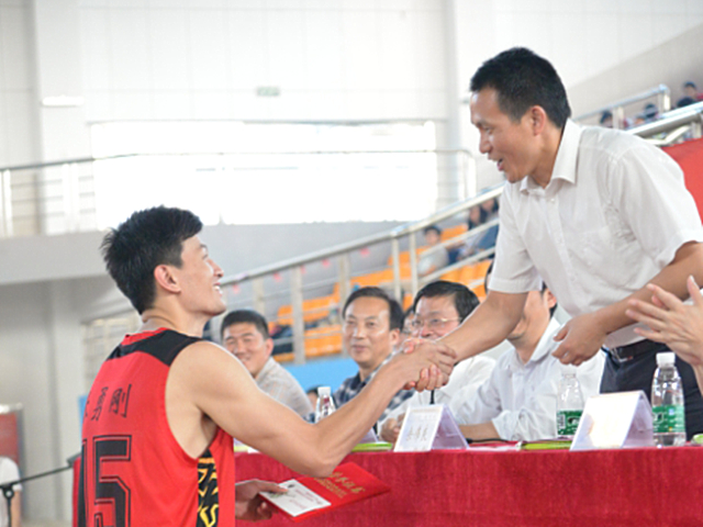 在热烈的掌声中,领导和嘉宾为获奖代表队和获奖运动员颁奖,余伟良随后宣布本届篮球联赛正式闭幕。
