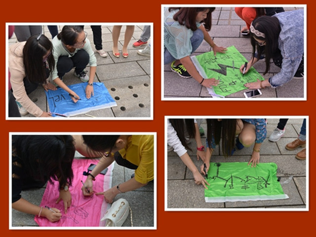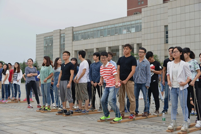 下午3点,在学校心理辅导员陶传谱老师和研究生会主要干部带领下,长理第十届研究生会全体成员在图书馆东侧开展了一场趣味横生的户外素质拓展活动。首先成员们分成了四队进行自我介绍,互相认识。四组队员集思广益,发挥想象力,制作出本队的队旗和口号。随后,分别开展了两人三足、龙凤戏珠、袋鼠接力赛等活动,考验队员之间的团结合作能力。