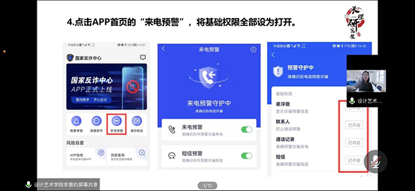 首先,研究生辅导员李慧从人身安全、财产安全、消防安全、食品安全、网络安全、国家安全等6个方面的安全问题进行了详细解读,对于刚入学的研究生来说,最容易忽视安全问题,接受安全教育,学习安全知识,能为我们的日常学习生活保驾护航。在专题学习的过程中,李慧以身边鲜活的案例为素材提醒同学们要牢记各项安全知识,尤其是研究生实验室安全问题、反电信诈骗问题,针对目前新生防范意识薄弱现象,给出了有效的解决方法。